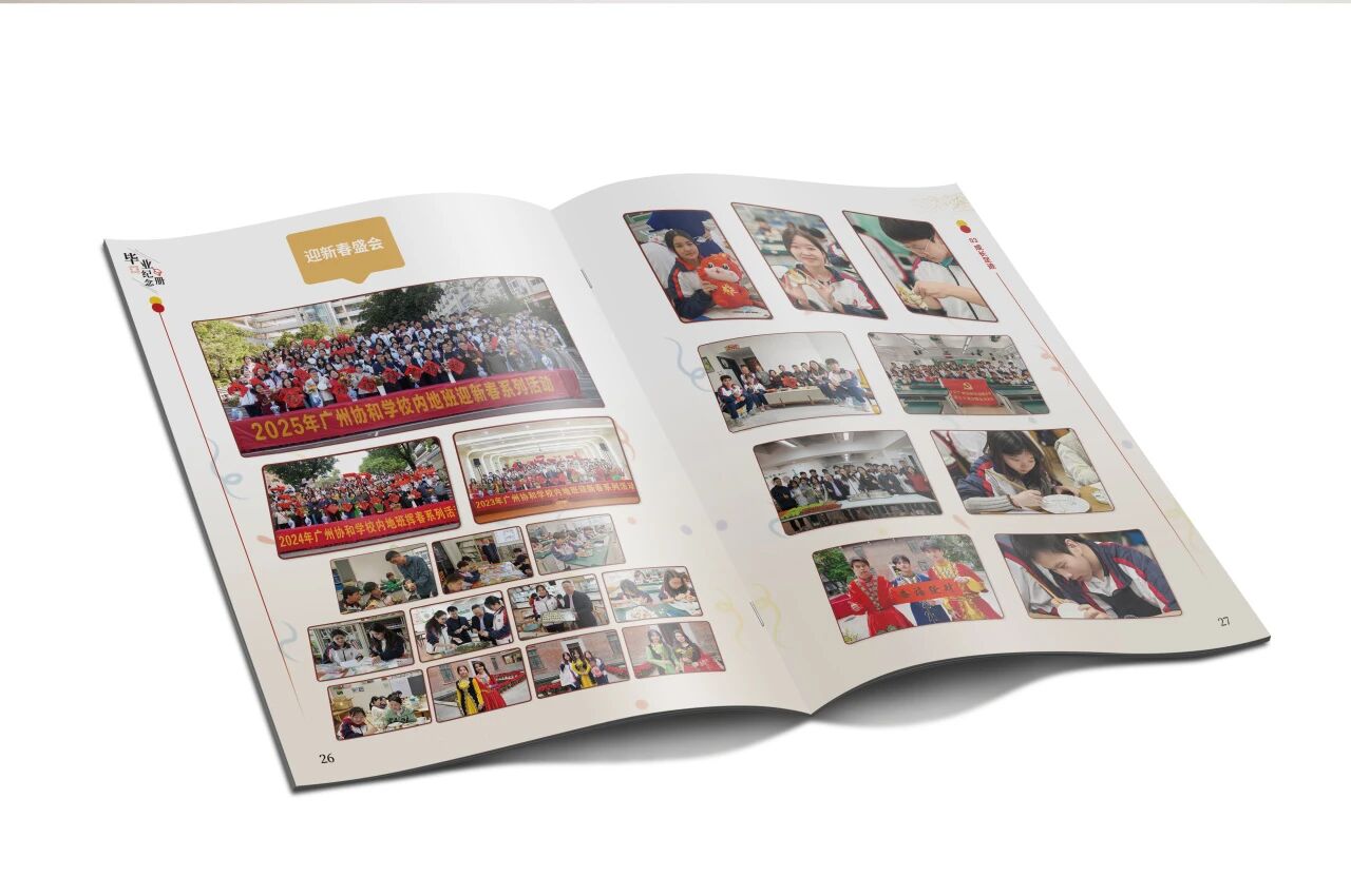 由于无毕业纪念册项目的直接经验,我有些担心因需求把控偏差而影响项目推进,但基于过往纪念画册的深厚积淀,我以其作为宝贵的参考基底,结合毕业纪念册承载着独特的青春叙事与集体情感的属性,摒弃了简单套用既有模板的做法,主动突破传统画册的框架束缚,将目光聚焦于挖掘毕业生的独特气质与校园生活的鲜活细节,力求让每一页都洋溢着蓬勃的青春气息。在以全新视角重新解构毕业纪念册的类型化布局逻辑后,我通过大胆重组,取消过往章节化的目录设计,以模块化叙事单元重构内容版图;通过融合创新,将毕业季独有的时光流转、同窗情谊、成长轨迹及恒久纽带作为核心叙事视角。最终,这本纪念册不仅承载了广州协和学校深厚的育人理念与教师们的殷殷嘱托,更化身为一册充满青春印记与真挚情感的时光礼赞,为新疆高中班的学子们定格了这段跨越山海、弥足珍贵的求学岁月,赋予毕业以庄重而温暖的独特仪式感。