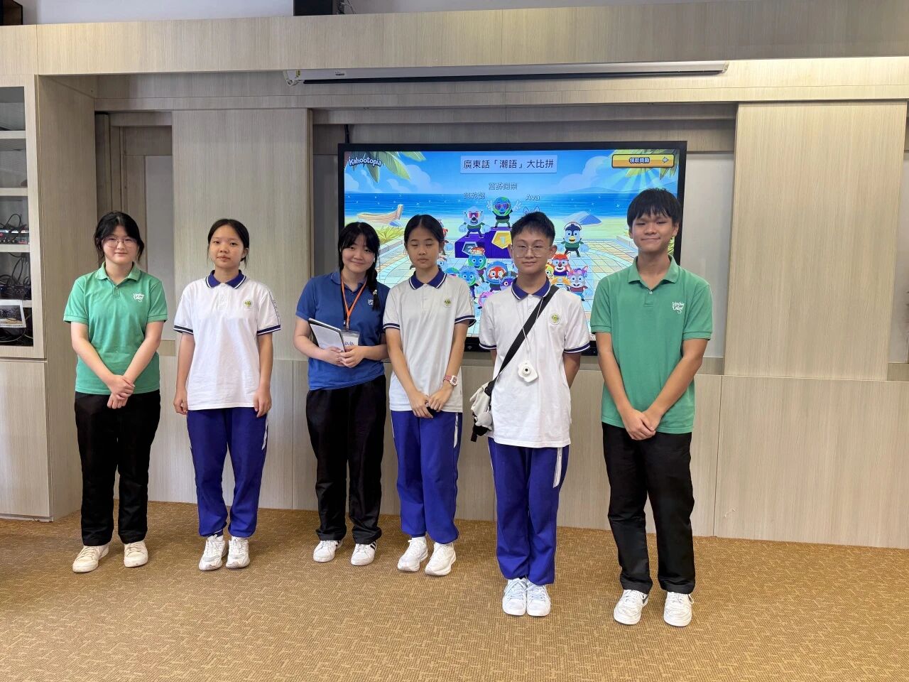 初见时,两校学子还略显拘谨,但随着“粤语自我介绍小挑战”“广东话【潮语】大比拼”“电子划艇竞赛”等互动游戏的展开,现场气氛迅速升温。小息时间里,同学们主动沟通交流,探讨两地不同的校园文化和学习生活,让原本陌生的面孔在欢声笑语中渐渐熟悉。欢乐的时光总是短暂。交流活动结束后,同学们带着满满的收获启程返回广州,为此次交流画上圆满句号。