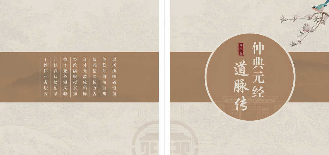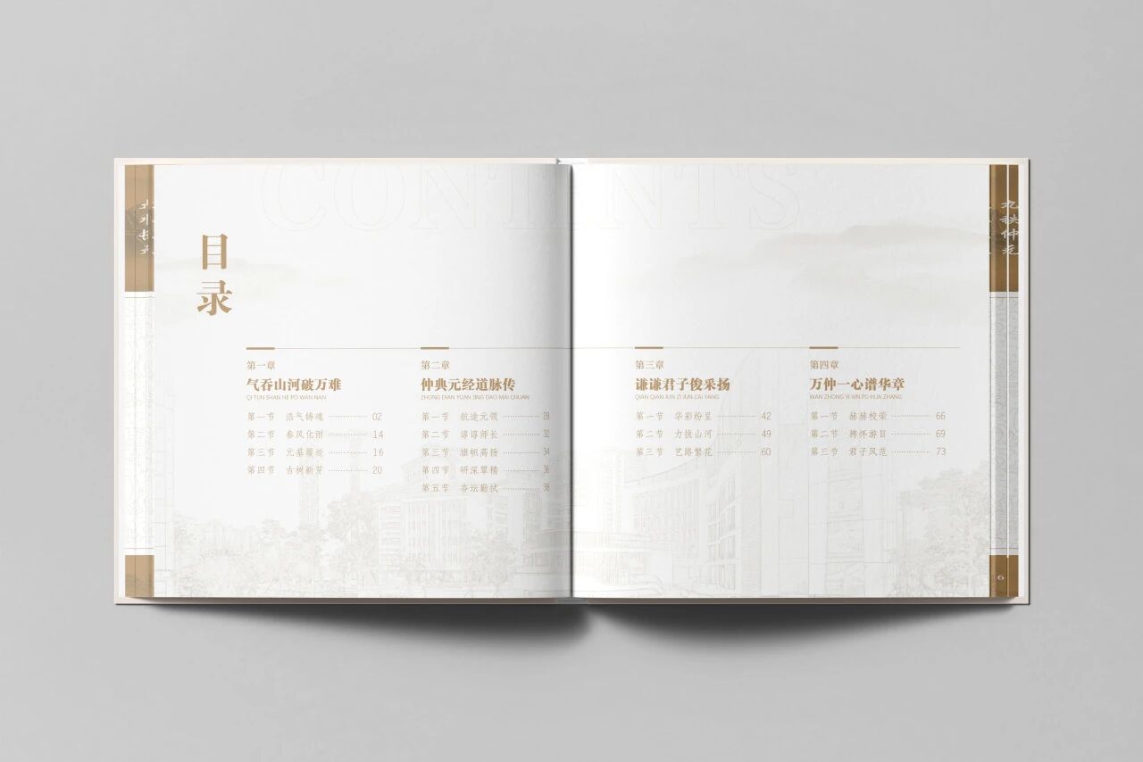 带着问题,我重新梳理校史脉络:从抗战时期的抗争,到新世纪“养浩然之气,扬君子之风”的坚守,最终确定以“精神传承”为暗线,紧扣学校一贯强调的“气”。画册由此分为“气吞山河破万难”“仲典元经道脉传”“谦谦君子俊采扬”“万仲一心谱华章”四章,章标题以七字统领、节标题以四字点睛,既具对称韵律,又巧妙融入校名“仲”“元”,融合“君子风”与“浩然气”,既呼应校歌中的革命豪情,又契合校训的当代诠释。