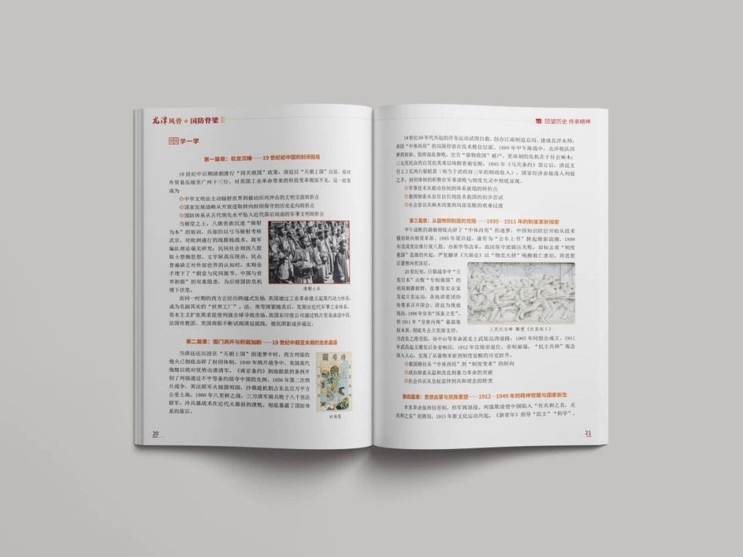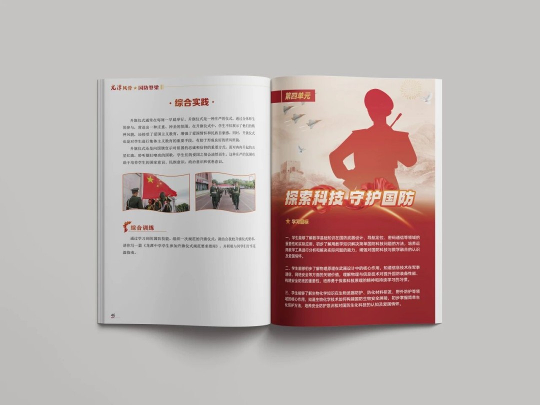 编撰的首要难点,在于定位。紧扣初中生学情特点,我打破辞藻华丽、晦涩难懂的标题模式,回归质朴实用风格。书名《龙潭风骨 国防脊梁》以简洁而有力的笔触直抒胸臆,将国防事业的使命担当与龙潭中学育人铸魂的深远意义巧妙勾勒,浑然一体。各章节标题拟定也紧密结合学校文化与国防特色,既具针对性,又充满专属感,让学生一眼就能抓住核心,快速进入学习状态,无需在理解标题上耗费过多精力。