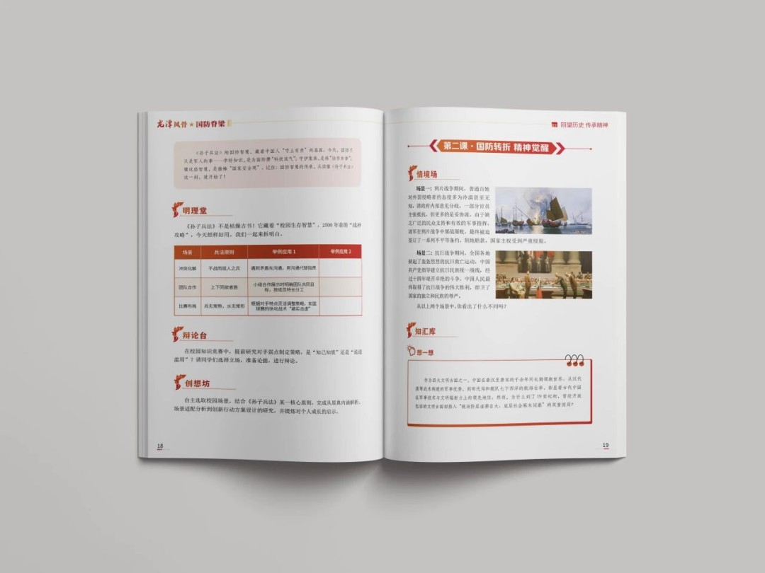 在内容编排上,通过创造性的内容重构,打破学科的壁垒,将知识、能力、价值观锻造为一个整体,实现了跨学科深度融合,所有学科知识不再以自身为核心,而是成为服务“守护国防”这一目标的工具,目标导向清晰,层层递进,契合学生认知发展规律,助力构建完整国防知识体系,真正实现让学生学思悟践一体化,全面提升学生的国防素养。
