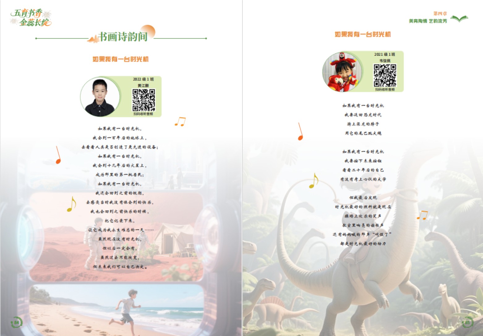 于是我创新将朗诵音频、原创诗歌歌曲转化为二维码嵌入版面,让一张纸实现“视听说”联动,读者扫码即可“读文、赏画、听诗”,让静态文字拥有了动态生命力,突破纸质载体的局限。