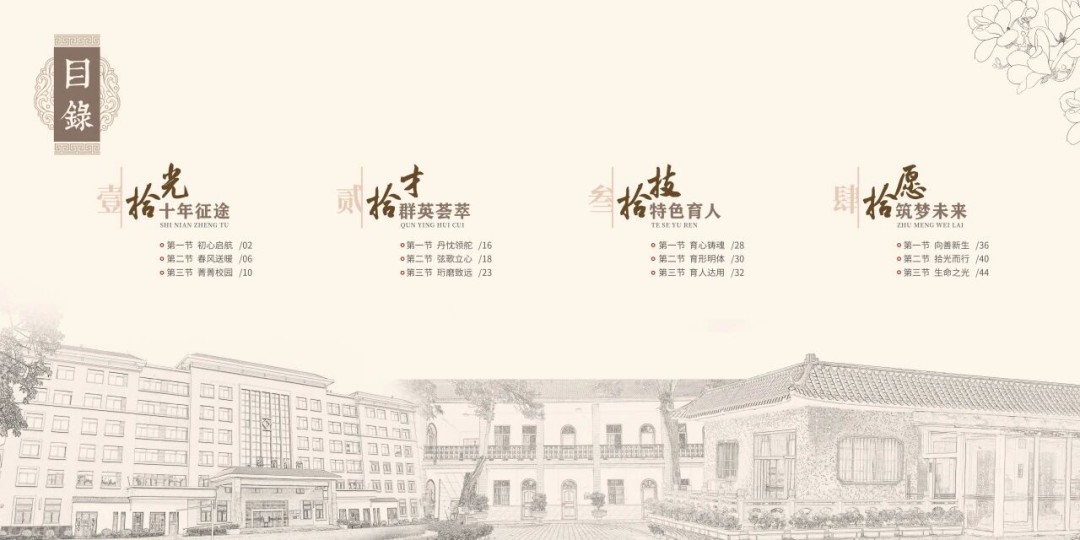画册以“拾光、拾才、拾技、拾愿”四段式结构设计,形成时间与价值的双重叙事轴,既还原办学十年的发展轨迹,又突出特殊教育的鲜明特色。