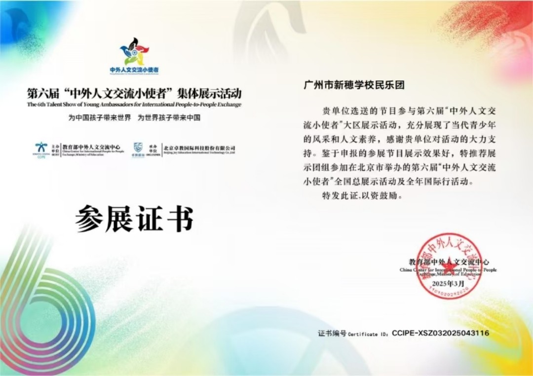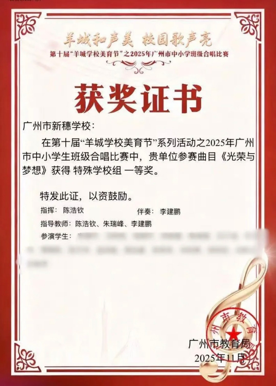 这里,奖牌的意义远超名次。每一份荣誉,都是一次生命的盛大绽放;每一个音符,都在诉说着“以赛促学,以赛促学,以美育心”的动人故事。让我们一同回眸新穗国风艺术团这不平凡的一年,看他们如何用艺术为成长铺路,让梦想照进现实。